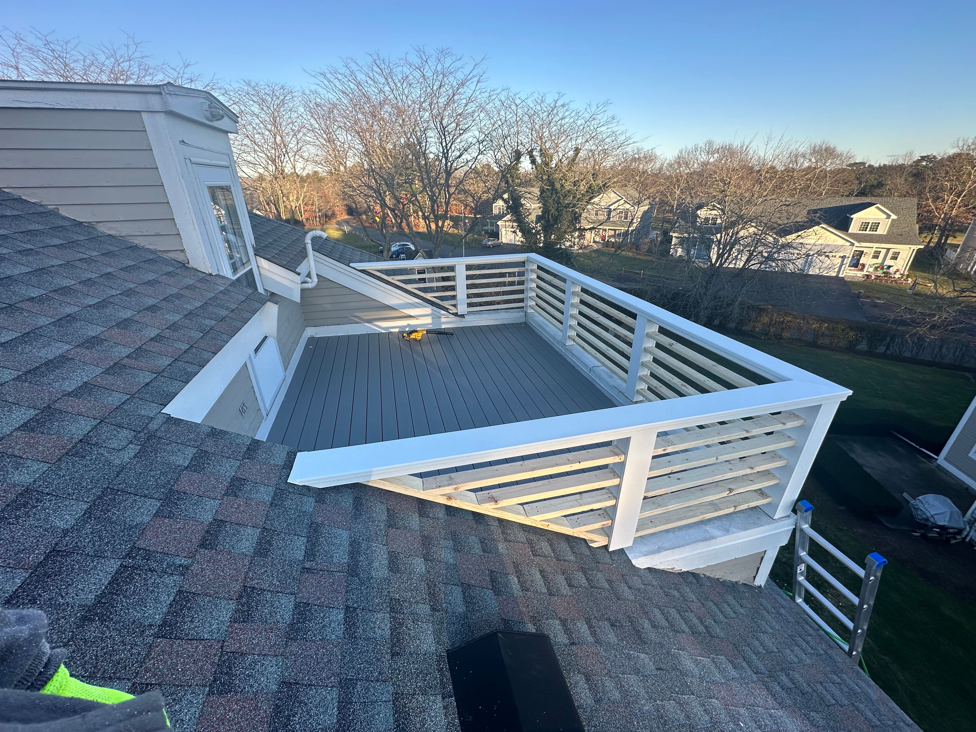 - Custom decks built with composite, treated wood, or PVC materials.